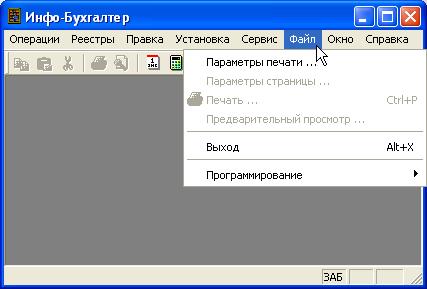 Рисунок 6. Главное меню программы Инфо-Бухгалтер 10 ë Замечание