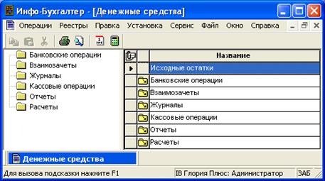 Доступ ко всем функциональным компонентам модулей и блоков программы Инфо-Бухгалтер 10 можно получить путем выбора соответствующего подпункта в пункте главного меню «Операции» (Рисунок 16).