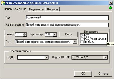 Рисунок 111. Окно данных начисления, закладка Формула.