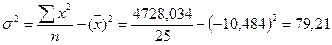 С вероятностью 95% генеральное среднее находится в интервале от Доверительный интервал для генеральной дисперсии, при доверительной вероятности 95%: