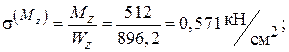Найбільші розтягальні та стискальні напруження виникають у точках 2 та 4 вказаного перерізу: