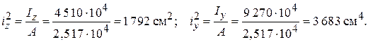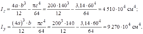 Головні центральні осьові моменти інерції перерізу дорівнюють: