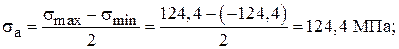 Визначимо амплітудне значення нормальних напружень при симетричному циклі: