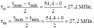 Амплітудне та середнє значення дотичних напружень при віднульовому (пульсуючому) циклі: