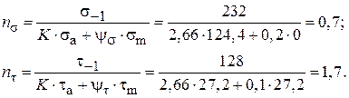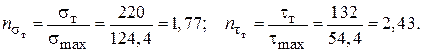 Результуючі коефіцієнти запасу міцності з витривалості та з текучості: