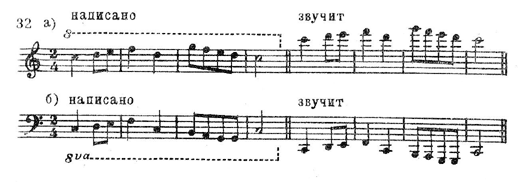 10. Якщо твір складається з 3 частин, причому 3-тя являє собою точний повтор першої, то замість виписування 3-ї частини над кінцем 2-ї частини пишуть: Da Capo al Fire (да капо аль фіне, тобто з початку до кінця) або скорочено D.C.al F, або ще коротше D.C. В тому місці, де повторення має закінчитись, пишуть слово Fine. Якщо повторення робиться неповним, то пишуть над місцем першої частини, з якого потрібно почати повторення, знак S або F, а над кінцем 2-ї частини – Dal segno (даль сенье, тобто від знака) або D. S. 11. Знаки рівномірного повторення одного звуку чи співзвуччя і tremolando. Для того, щоб позначити рівномірне повторення одного звуку чи акорду, використовуються похилі лінії. Їх кількість відповідає тривалостям, в яких потрібно повторювати звук. Похилі лінії до цілої ноти добавляються над або під нею, а до менших тривалостей – поперек штиля (паралельно ребрам тривалостей, якщо вони є). Загальна тривалість повторення позначається звичайною нотною тривалістю.