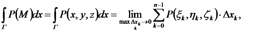 Определение 2. Пусть существуют пределы интегральных сумм (1) при бесконечном увеличении числа точек деления и бесконечном уменьшении длин векторов а) б) в) (2)