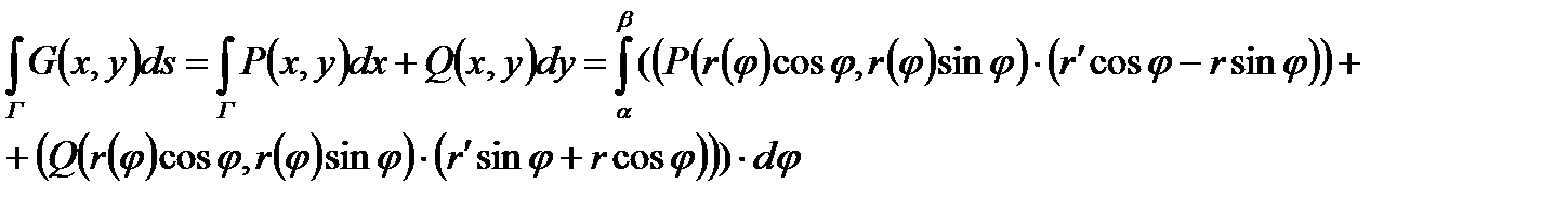 4) Если же ориентированная кривая Г задана на плоскости в полярных координатах: