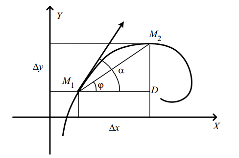 Рис.14. К выводу формулы связи криволинейных интегралов первого и второго рода.