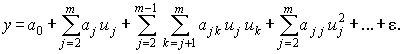Для такого класса задача выбора функции сводится к задаче выбора значений коэффициентов a 0 , aj, ajk, …, ajj, …. Однако универсальность полиномиального представления обеспечивается только при возможности неограниченного увеличения степени полинома, что не всегда допустимо на практике, поэтому приходится применять и другие виды функций. Частным случаем, широко применяемым на практике, является полином первой степени или уравнение линейной регрессии