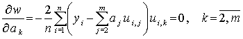(10) Минимум находится приравниванием нулю всех частных производных выражения (10), взятых по неизвестным коэффициентам, и решением системы уравнений