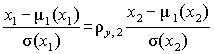(12) Итак, получено т –1 линейных уравнений, что позволяет однозначно вычислить значения a 2, a 3, …, aт. Если же линейная модель неточна или параметры измеряются неточно, то и в этом случае МНК позволяет найти такие значения коэффициентов, при которых линейная модель наилучшим образом описывает реальный объект в смысле выбранного критерия среднеквадратического отклонения. Когда имеется только один параметр, уравнение линейной регрессии примет вид a 2 = r y , 2. (13) Соотношение (13) подтверждает ранее высказанное утверждение, что коэффициент корреляции является мерой линейной связи двух стандартизованных параметров. Подставив найденное значение коэффициента a 2 в выражение для w, с учетом свойств центрированных и нормированных величин, получим минимальное значение этой функции, равное 1– r 2 y , 2. Величину 1– r 2 y , 2 называют остаточной дисперсией случайной величины y относительно случайной величины u 2. Она характеризует ошибку, которая получается при замене показателя функцией от параметра Переходя от центрированных и нормированных значений показателя и параметра