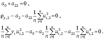 Это уравнение также линейно относительно коэффициента корреляции. Нетрудно заметить, что центрирование и нормирование для линейной регрессии позволяет понизить на единицу размерность системы уравнений, т.е. упростить решение задачи определения коэффициентов, а самим коэффициентам придать ясный смысл. Применение МНК для нелинейных функций практически ничем не отличается от рассмотренной схемы (только коэффициент a 0 в исходном уравнении не равен нулю). Например, пусть необходимо определить коэффициенты параболической регрессии