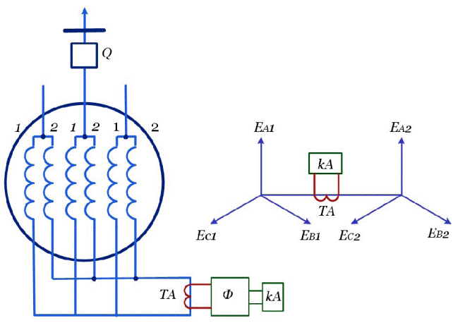 Рис. 5.1. Принцип действия поперечной дифференциальной защиты генератора