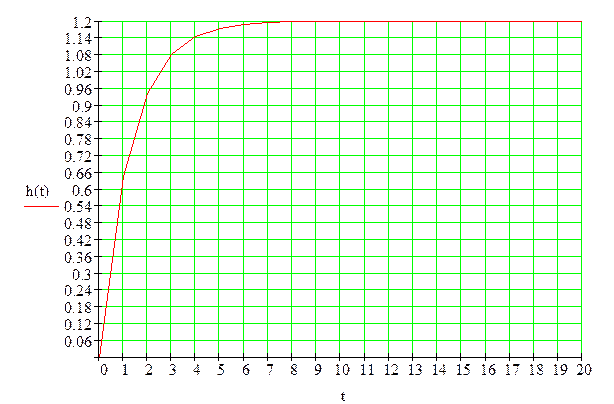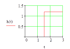 Решение: Графическое представление переходных и импульсных функций называют временными характеристиками. Временные характеристики представляют процессы, происходящие в динамическом и статическом режимах. Переходной функцией h(t) называют функцию, описывающую сигнал на выходе при условии, что на вход подано единичное ступенчатое воздействие при нулевых начальных условиях. График переходной функции, представляющий собой зависимость функции h(t) от времени t, называют переходной характеристикой. В том случае, если амплитуда единичного ступенчатого воздействия отлична от единицы получают разновидность переходной характеристики, которая называется кривой разгона. Импульсной дикцией или весовой функцией w(t) называют функцию, описывающую реакцию на единичное импульсное воздействие при нулевых начальных условиях. График зависимости функции w(t) от времени называют импульсной переходной (импульсной характеристикой). Аналитическое определение переходных функций и характеристик основано на следующих положениях. Если задана передаточная функция системы или составной части W(S) и известен входной сигнал X(t), то выходной сигнал y(t) определяется следующим соотношением: