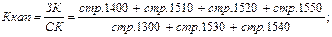 С позиций долгосрочной перспективы финансовое состояние характеризуется такой категорией, как финансовая устойчивость. Финансовая устойчивость — это такое состояние финансовых ресурсов, их распределение и использование, которые обеспечивают развитие организации на основе роста прибыли и капитала при сохранении платежеспособности. На финансовую устойчивость оказывает влияние множеств факторов, которые можно разделить на внешние и внутренние. К внешним факторам финансовой устойчивости относятся: · экономические условия хозяйствования; · господствующая в обществе техника и технология; · платежеспособный спрос и уровень доходов потребителей; · налоговая и кредитная политика государства; · уровень развития внешнеэкономических связей; · отраслевая принадлежность организации и др. Внутренними факторами, влияющими на финансовую устойчивость организации, являются: · структура выпускаемой продукции, ее доля в общем платежеспособном спросе; · размер и структура расходов, их соотношение с денежными доходами; · состояние и структура имущества; · структура и эффективность использования капитала (собственного и заемного); · компетентность и профессионализм менеджеров организации, гибкость проводимой ими экономической и финансовой политики (умение реагировать на изменение внутренней и внешней среды) и др. Финансовая устойчивость оценивается с помощью абсолютных и относительных показателей. Абсолютные показатели финансовой устойчивости - это показатели, характеризующие состояние запасов и обеспеченность их источниками формирования. При этом общая величина запасов берется равной сумме значений строк 1210 «Запасы» и 1220 «НДС по приобретенным ценностям» Баланса соответственно (сумма такого НДС учитывается при расчете, так как до принятия его к возмещению из бюджета НДС должен финансироваться за счет источников формирования запасов). Для характеристики источников формирования запасов используются следующие показатели: 1. наличие собственного оборотного капитала (СОК):