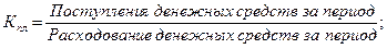Рассчитанный таким образом коэффициент платежеспособности позволяет увидеть, до какого уровня могут быть сокращены поступления денежных средств, чтобы можно было осуществить необходимые платежи. Например, если коэффициент равен 1, 15, то это означает, что организация может сократить приток денежных средств на 15% без риска не оплатить счета. Нижней допустимой границей значения данного показателя является 1;