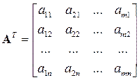 Транспонування матриць. Перетворення матриці A, що складає в заміні рядків стовпцями (чи стовпців рядками) називається транспонуванням. Отримана внаслідок такого перетворення матриця називається транспонованою до матриці A і позначається звичайно тим же символом, з додаванням верхнього індексу «Т»: A Т.