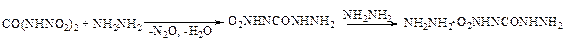 Соединение впервые было получено и охарактеризовано в работе [5]. При обработке динитромочевины гидразином при мольном соотношении 1: 1-2 после соответствующих превращений был выделен и идентифицирован 4-нитросемикарбазид. Избыток гидразина приводит к гидразиниевой соли 4-нитросемикарбазида: