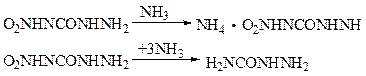Как известно, нитромочевина в реакциях с аминами почти всегда образует амиды с очень хорошими выходами. В этом случае на новый амидный остаток обменивается исключительно нитроамидная группа. Такой метод особенно пригоден для синтеза монозамещенных мочевин. В результате из соответствующих аминов возможно получение метилмочевины, этилмочевины, н-бутилмочевины, этилендимочевины и т. д. 4-Нитросемикарбазид в реакциях нуклеофильного замещения с аминами ведет себя аналогично мочевине. В случае обработки 4-нитросемикарбазида раствором аммиака в мольном соотношении 1: 1 получается аммониевая соль 4-нитросемикарбазида, а при избытке аммиака – семикарбазид: