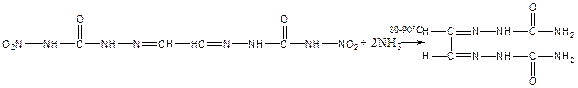 Избыток аммиака в течение 1 часа при температуре кипения раствора разлагает бис(нитросемикарбазон) глиоксаля до бис(семикарбазон) глиоксаля: