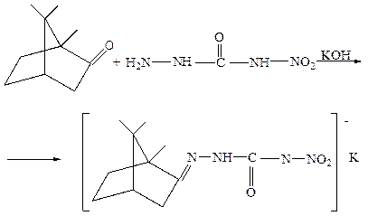 При взаимодействии 4-нитросемикарбазида с камфорой образуется калиевая соль нитросемикарбазон камфанона [14]: