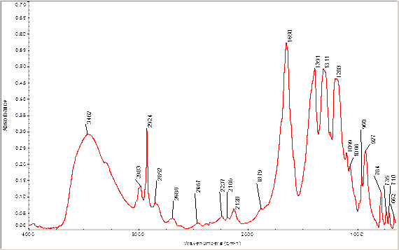 Рисунок 2.2 – ИК-спектр натриевой соли S-метилтио-N-нитрокарбамата Для натриевой соли S-метилтио-N-нитрокарбамата можно выделить следующие характерные пики: 3462 см-1 - колебания группы OH-, 2983 см-1, 2924 см-1, 2852 см-1, 2688 см-1 - колебания группы NH-, 2467 см-1, 2237 см-1, 2186 см-1, 2128 см-1 - колебания метильной группы CH3, 1879 см-1, 1650 см-1 - колебания иминной группы C=N, 1391 см-1, 1311 см-1, 1203 см-1, 1099 см-1, 1066 см-1, 960 см-1, 927 см-1 - колебания группы NO2, 784см-1, 735 см-1, 710 см-1, 662 см-1 - колебания фрагмента N-NO2. 2.3.2 Изучение реакции взаимодействия S, S′ -ди(метилтио)-N-нитроимина с едким калием