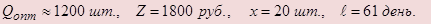 Задача 2. Цветочный магазин использует 600 цветочных горшков в месяц. Годовая стоимость хранения одного горшка равна 1руб. 50коп., стоимость одного заказа 150 руб. Магазин работает 365 дней в году. Доставка заказа занимает 1 день. Определите экономичный объём заказа, годовые расходы на хранение запасов, период поставок, точку заказа. Постройте график циклов изменения запаса товара.