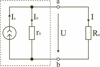 При расчете и анализе электрических цепей реальный источник электрической энергии с конечным значением величины внутреннего сопротивления r0 заменяют расчетным эквивалентным источником ЭДС или источником тока.