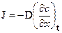Знак (-) вказує що потік спрямований в напрямку протилежному до зростання концентрації (в напрямку до області нижчих концентрацій). Коефіцієнт пропорційності, D, є коефіцієнтом дифузії. Розмірність потоку J - одиниця маси на площу в одиницю часу, наприклад, моль/см2*с. Розмірність коефіцієнту дифузії (найчастіше м2/с або см2/с) в загальному випадку залежить від розмірності концентрації (наприклад, якщо концентрація виражена в одиницях об’єму, як роблять в кінетиці, коефіцієнт дифузії матиме розмірність см-1с-1). Коефіцієнт дифузії повинен бути визначений експериментальним шляхом і залежатиме від природи дифундуючої речовини, властивостей системи де відбувається дифузія і, як завжди, від температури. В загальному випадку коефіцієнт дифузії не є незалежним від градієнту концентрацій. Якщо бути точним, рівняння вище наведене рівняння є справедливим якщо дифузія відбувається лише в одному напрямку. Більш загальним виразом першого закону Fick's, який є чинним у тривимірному просторі є: