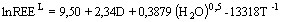 4. Оцінка вмісту води в залишковому розплаві ( ) для значення f = 0, 185 (заміна Ap на Mnz у парагенезисі з Zrn) отримана підстановкою відповідних модельних оцінок його Tmodel , C LREE і валового складу в рівняння розчинності Mnz (Montel, 1993), яка контролюється не тільки складом та температурою розплаву, але й : , де — сума концентрацій у розплаві LREE (La – Gd за винятком Eu), нормованих на їхні атомні маси, (катіонне відношення в розплаві), — вміст води (мас. %) у розплаві ( ), — абсолютна температура (K). Така оцінка, яка в значній мірі базується на Tmodel , дозволяє істотно розвинути модель магматичної системи, у тому числі одержати оцінку = 2, 36 мас. %, що відповідає (Рябчиков, 1975) виходу первинного розплаву на ліквідус (f = 1) за Tmodel = 900 o і Ptotal ~6, 3 кбар [глибина ~18-20 км, що добре узгоджується з геофізичними даними (Starostenko et al., 2002) щодо залягання покрівлі габроїдного “діапіру” — можливого ініціатора формування первинного розплаву], простежити зростання у магматичній еволюції аж до досягнення насичення залишкового розплаву відносно H2O з наступним відокремленням рудоносного водного флюїду (рис. 9), тобто до переходу магматичної системи в магматогенно-гідротермальну стадію розвитку.