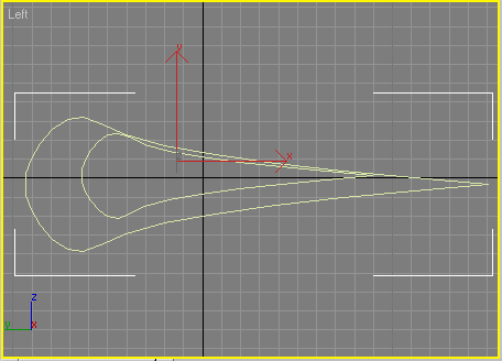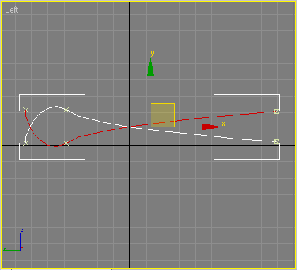Для створення другого елемента перейдіть у вікно проекції Left (Зліва) і створіть ще один об'єкт Line (Лінія) форми, показаної на мал. 3.75. При необхідності зміните характер зламу вершин так, як описано вище. При моделюванні об'єктів за допомогою тривимірних кривих часто виникає необхідність вирівняти яку-небудь точку сплайну. Робиться це аналогічно вирівнюванню тривимірних об'єктів. В нашому випадку необхідно вирівняти крайні вершини кривої по одній координаті У. Для цього зробіть наступне.
