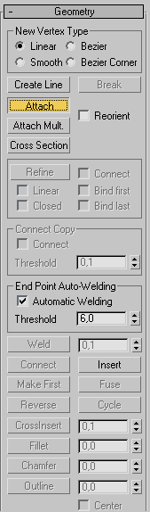 Мал. 3.82. Кнопка Attach (Приєднати) в Geometry (Геометрія) настройок виділеного сплайна