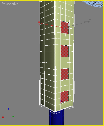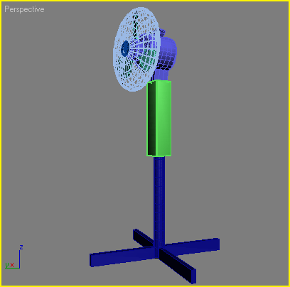 Нарешті, останній елемент підлогового вентилятора — це коробка з кнопками управління. Для її створення ми також використовуватимемо редаговані поверхні. В основі цього об'єкту лежить примітив ChamferBox (Паралелепіпед з скошеними кутами). Створіть його, перейдіть на вкладку Modify (Зміна) командної панелі і встановіть для нього наступні параметри: Length (Довжина) — 130, Height (Висота) — 550, Width (Ширина) - 130 і Fillet (Закруглює) - 5. Створений об'єкт необхідно вирівняти відносно виступу. Для цього у вікні Align Selection (Вирівнювання виділених об'єктів) виконаєте наступне.