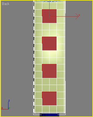 5. Встановіть прапорець Z Position (Z-позиція). 6. Встановіть перемикач Current Object (Об'єкт, який вирівнюється) в положення Maximum (По максимальних координатах вибраних осей). 7. Встановіть перемикач Target Object (Об'єкт, відносно якого вирівнюється) в положення Minimum (По мінімальних координатах вибраних осей). 8. Натискати кнопку Apply (Застосувати) або ОК. В результаті об'єкти розташовуватимуться так, як показано на мал. 3.141. Щоб можна було змінювати форму коробки і видавити кнопки, конвертуйте об'єкт в Editable Poly (Редагована полігональна поверхня). Для цього клацніть правою кнопкою миші на об'єкті і виконайте команду Convert To > Convert to Editable Poly (Перетворити > Перетворити в редаговану полігональну поверхню). Виділіть об'єкт ChamferBox (Паралелепіпед з скошеними кутами) у вікні проекції і перейдіть на вкладку командної панелі Modify (Зміна). Розкривши список Editable Poly (Редагована полігональна поверхня) в стеку модифікаторів, перейдіть в режим редагування Edge (Ребро). Натискуючи і утримуючи клавішу Ctrl, виділіть групи, що містять по чотири ребра, в центральній частині об'єкту так, як це показано на мал. 3.142. При цьому вони стануть червоними.