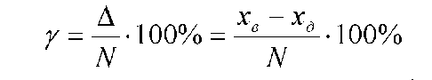 Приведена похибка – це відношення абсолютної похибки до нормуючого значення N (верхня межа вимірювання, довжина шкали, діапазон вимірювання).