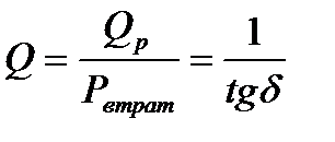 де X – реактивний опір. У залежності від втрат конденсатори умовно поділяють на три групи: без втрат (tgδ = 0), з малими втратами (tgδ < 0.01) і з великими втратами (tgδ > 0.01). Котушки індуктивності характеризуються величиною, зворотною tgδ, яка називається добротністю (Q).