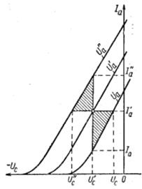 где Предположим далее, что напряжение отрицательного смещения на сетке остается прежним. Рабочая точка в рассматриваемом режиме переместится на другую анодно-сеточную характеристику, соответствующую анодному напряжению Перепишем это уравнение в виде