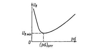 Пробойным потенциалом или потенциалом зажигания является разность потенциалов, при котором выполняется условие (4), и определяется он из соотношения