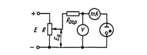 Рис. 5. Схема для снятия вольт-амперной характеристики газоразрядного прибора