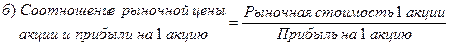 Отражает отношения между компанией и её акционерами. Этот коэффициент показывает, сколько денежных единиц согласны заплатить акционеры за одну денежную единицу чистой прибыли компании.