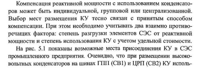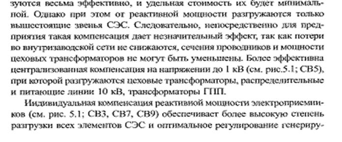 Допускается распределение мощности КУ между кабельными линиями пропорционально их реактивной нагрузке при условии: – если длина радиальных линий менее 100м; – при любых длинах радиальных линий, если разница между их сопротивлениями не превышает 200%. Если это условие не выполняется, распределение мощности КУ между кабельными линиями выполняется по формуле: Qкнi = Qнн i – (Qнн – Qкн)(Rэкв / ri) Qнн I – расчетная реактивная нагрузка радиальной линии; Qнн – суммарная реактивная нагрузка трансформатора; Qкн – суммарная мощность компенсирующих устройств на напряжение до 1000 В Rэкв – эквивалентное сопротивление расчетной схемы; ri – активное сопротивление радиальной линии