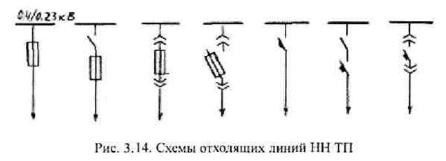 Схемы отходящих линий низшего напряжения ТП приведены на рис. 3.14.