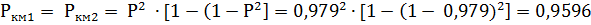 Вероятность безотказной совместной работы контакторов КМ1, КМ2: