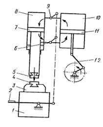 Рис. 15.2. Кинематическая схема пневматического ковочного молота