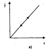 Рис.1. Реологические линии идеальных тел. а) упругого; б) пластического; в) вязкого