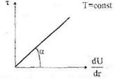 График зависимости между напряжением и скоростью сдвига называют " кривой течения". Для ньютоновских жидкостей " кривая течения'' представляет собой прямую линию с тангенсом угла наклона а, равным и (рис. 2).
