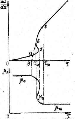 где τ n – некоторое напряжение сдвига, соответствующее началу сильного разрушения структуры. Оно находится из экспериментальной зависимости μ э = ƒ (τ) по величине