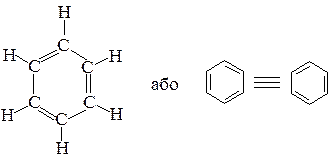 Кожна р–хмара перекривається з двома сусідніми р–хмарами, в результаті чого утворюється єдина спряжена π –система. Таке поєднання шести σ –зв’язків з єдиною π –системою називається ароматичним зв’язком. Цикл з шести атомів вуглецю, зв’язаних ароматичним зв’язком, називається бензольним кільцем або бензольним ядром. У відповідності до сучасних уявлень про електронну будову бензолу молекулу С6Н6 зображають так: