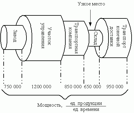 В общем случае анализ логистической стратегии приводит к постановке и решению на нижних уровнях управления следующих возможных вопросов: · Следует ли нам изменить складские и транспортные операции? · Изменится ли наш подход к планированию и составлению графиков работы? · Имеются ли у нас необходимые ресурсы, если нет - можем ли мы их получить? · Имеется ли у нас подготовленный персонал, и сможем ли мы в случае необходимости подготовить его? · Как выбранная стратегия повлияет на нынешних и потенциальных потребителей? · Какое влияние она окажет на персонал, сооружения, организацию деятельности, технологию и т. д.? При переходе к реализации стратегии необходимо рассматривать решения по каждой логистической функции, от снабжения до поставки. Но различные авторы выделяют следующие наиболее важные области, в которых, в первую очередь, надо принимать решения. 1. Структура ЛЦ. С точки зрения организации, цепь поставок состоит, во-первых, из нескольких уровней поставщиков, в которые входят источники сырья, промежуточные производители, посредники, а во-вторых, из нескольких уровней потребителей, перемещающих ГП до конечных пользователей. Различные стратегии приводят к разным типам цепей поставок, отличающиеся длиной (количеством уровней), шириной (количеством параллельных маршрутов), пропускной способностью, типом посредников, степенью контроля над логистикой, качеством услуг и затратами. 2. Размещение элементов инфраструктуры. После выбора структуры ЛЦ необходимо выяснить, где лучше всего разместить некоторые элементы ЛЦ, такие как промышленные предприятия, оптовые предприятия, склады, логистические центры и т.д. Вопрос размещения следует рассматривать очень тщательно, т. к. это решение оказывает значительное и долгосрочное влияние на многие показатели будущей работы. Кроме того, после того как сооружение начало действовать, его, как правило, трудно и очень дорого закрыть или переместить в другое место. 3. Стратегические взаимоотношения. Иногда лучше заниматься логистикой самостоятельно, в других случаях целесообразно воспользоваться услугами специализированных структур. Такой вид деятельности называют аутсорсингом, привлечением третьей стороны или контрактной логистикой. 4. Организация вспомогательных процессов, т. е. таких видов деятельности, которые способствуют эффективной работе ЛЦ. К ним относятся организация технического обслуживания оборудования, информационные технологии обработки информации, электронный обмен данными, использование возможностей Интернета, различные системы управления МП, например, " точно в срок" и т. д. Идея усовершенствования вспомогательных процессов становится крайне важной в тех случаях, когда конкурирующие организации по объективным причинам имеют одинаково эффективные структуры цепей поставок. В этом случае конкурентные преимущества могут заключаться в лучшей организации вспомогательных процессов. Планирование использования мощности Планы использования мощностей позволяют гарантировать, что для удовлетворения долгосрочного спроса имеющихся у организаций мощностей будет достаточно. Под мощностью операции понимается ее максимальная пропускная способность в заданный промежуток времени. Ограничение по мощности означает, например, что предприятие может выпустить не более 